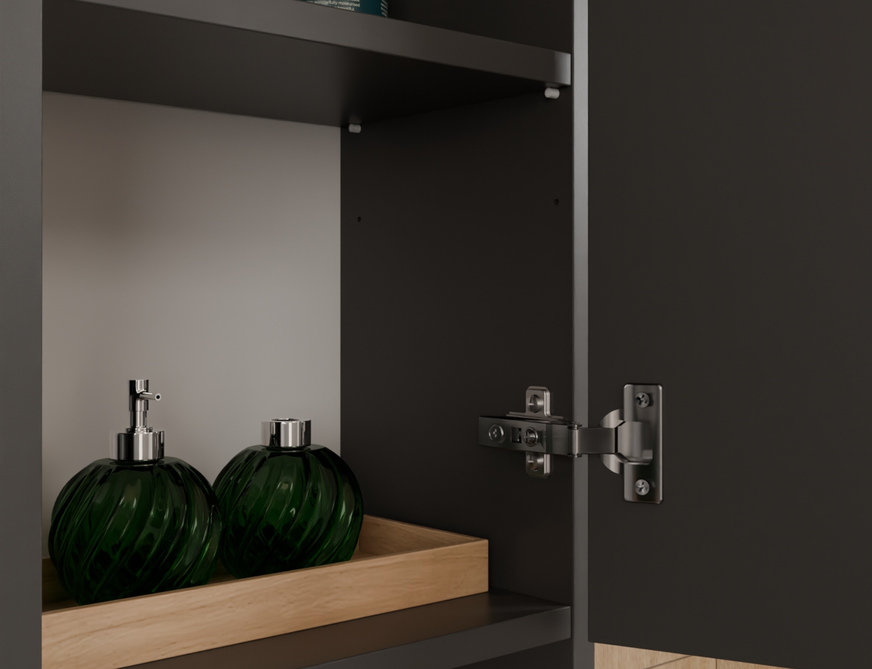 Szafka nad pralkę LORA to praktyczne rozwiązanie do każdej łazienki. 3 półki za drzwiami i jedna otwarta zapewniają wygodne przechowywanie. Zawiasy Soft Close gwarantują ciche zamykanie, a regulowane półki (+/- 6 cm) pozwalają dopasować przestrzeń do Twoich potrzeb.